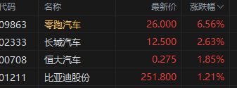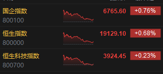 9月25日消息,港股三大指数高开低走,恒生科指午后一度翻绿,截至收盘,恒生指数涨0.68%,报19129.10点,恒生科技指数涨0.23%,国企指数涨0.76%。盘面上,科网股涨多跌少,哔哩哔哩涨超3%,快手涨超2%;中资券商股集体上涨,中泰期货涨超5%,中金公司涨超4%;黄金股个别活跃,山东黄金涨超2%;汽车股活跃,零跑涨超6%。