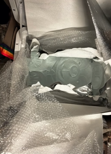 冰雕在冰箱里呆了一夜之后,大飞第二天就带着冰雕,在雪莉玫生日的这天,把这个惊喜礼物带到了雪莉玫人偶面前。